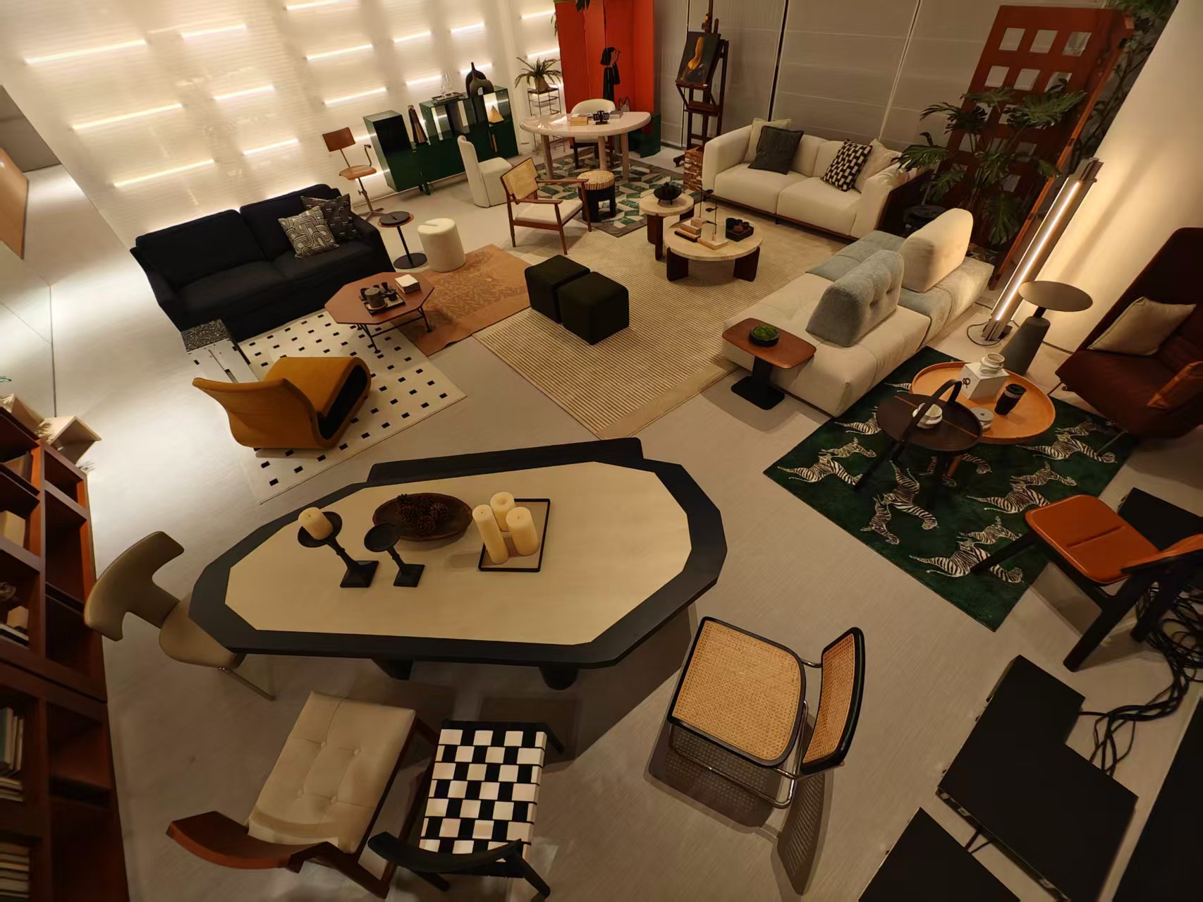 這不是一個(gè)傳統(tǒng)的家居展廳,在這里,沒有“焦點(diǎn)”,沒有哪個(gè)展品會(huì)搶走你的視線,反而每一步,都有新的風(fēng)景。
