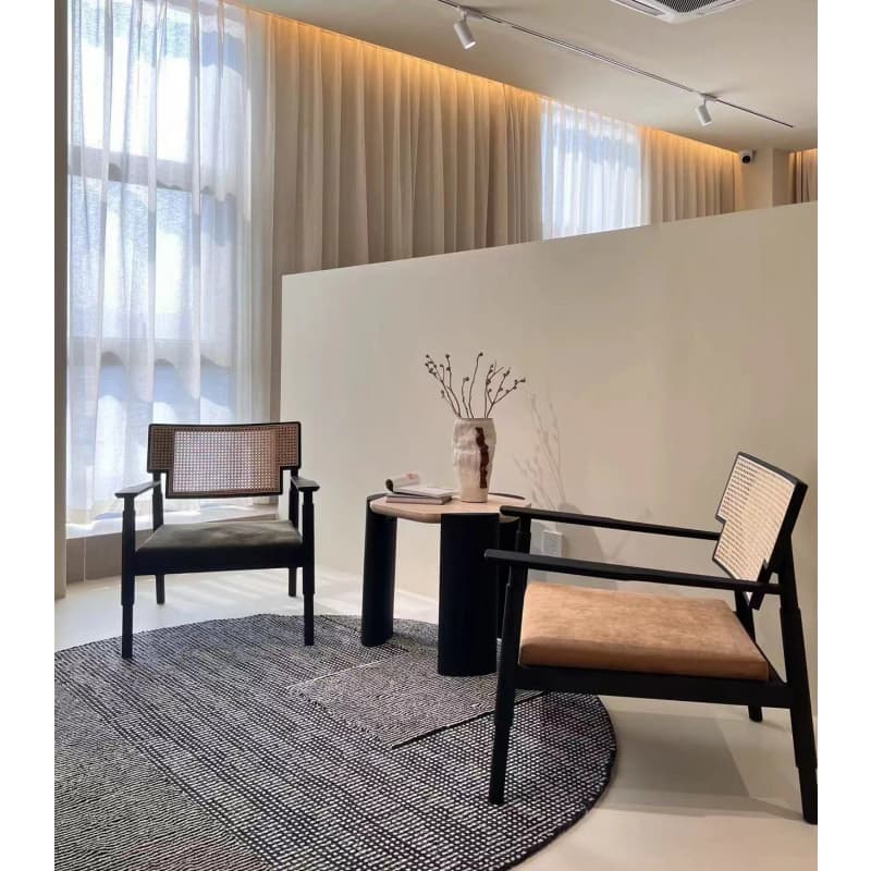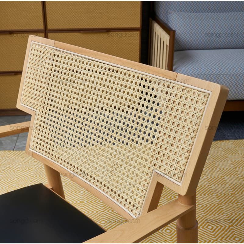 鏤空的藤編靠背復(fù)古且現(xiàn)代
