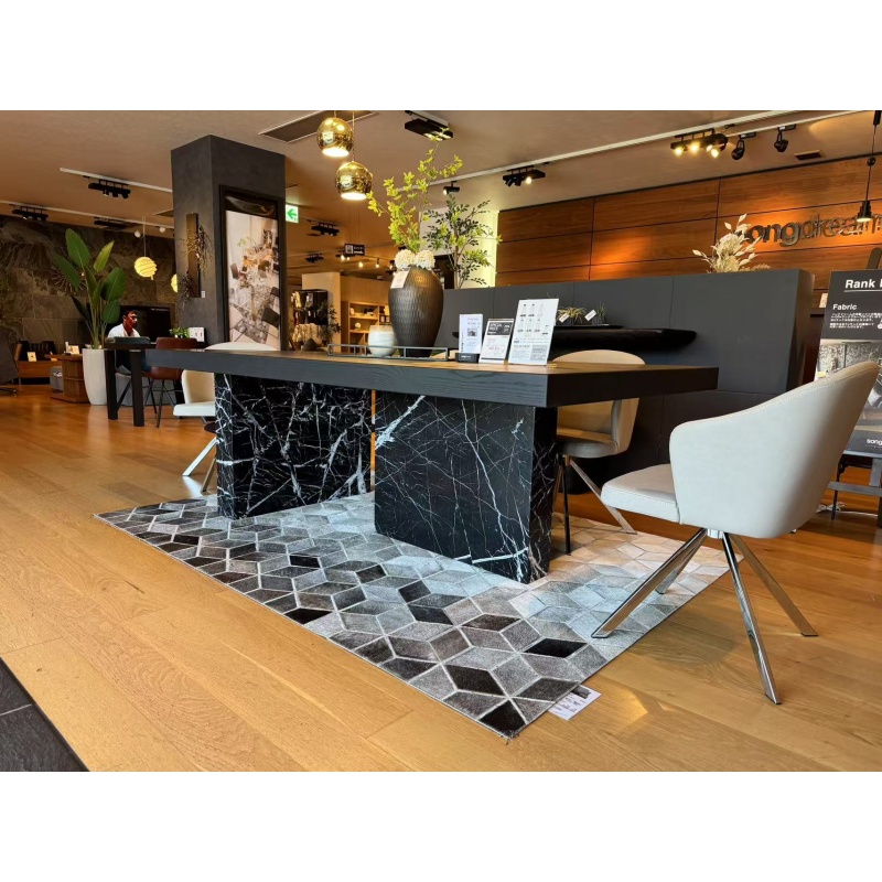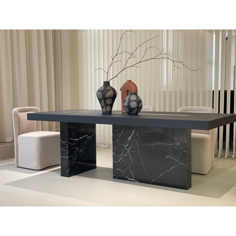 大理石和木頭完美結(jié)合,厚重的桌面和桌腿設(shè)計(jì)結(jié)合臺(tái)面嵌入式大理石設(shè)計(jì),是茶桌、會(huì)議桌的不二之選。