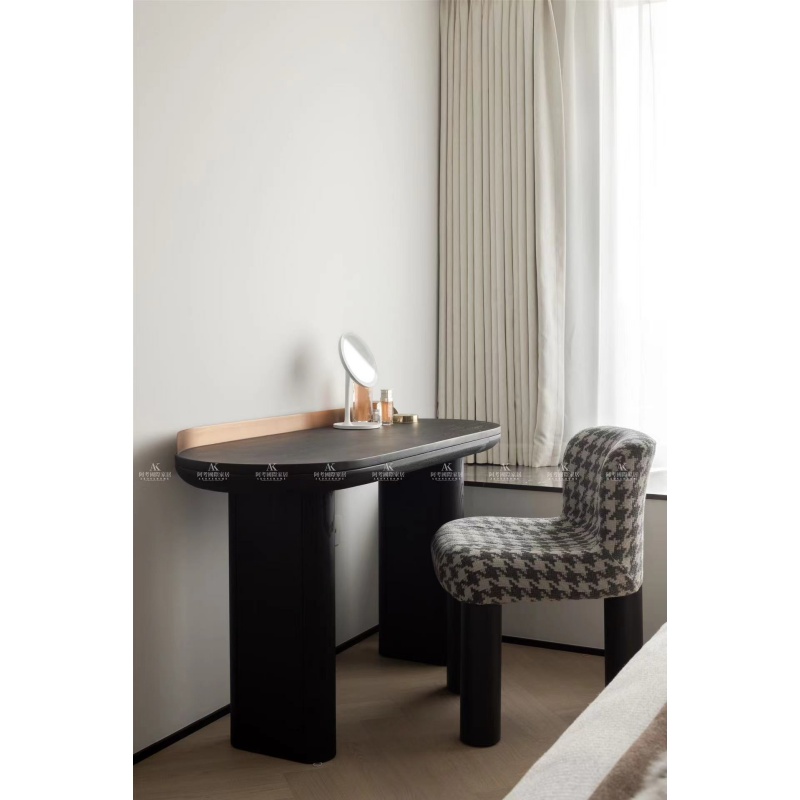 全實(shí)木妝臺(tái)和書(shū)桌,臺(tái)面的金屬部件畫(huà)龍點(diǎn)睛
