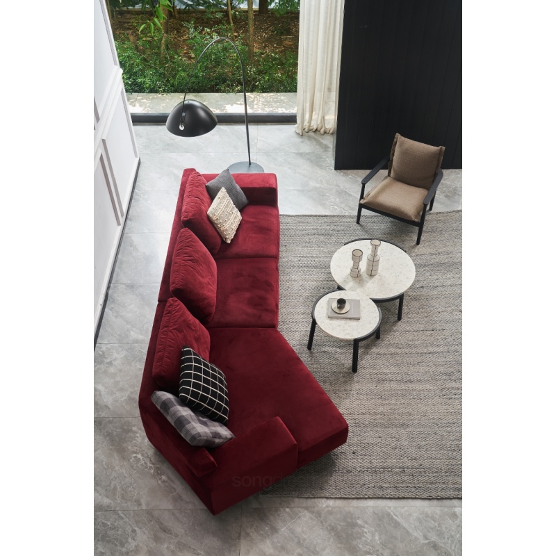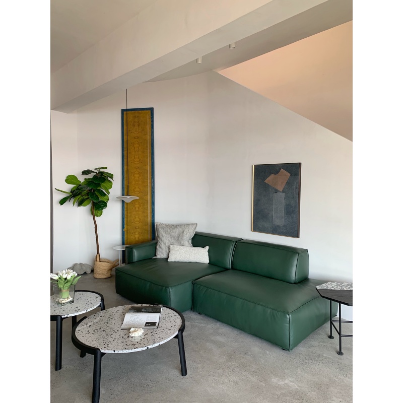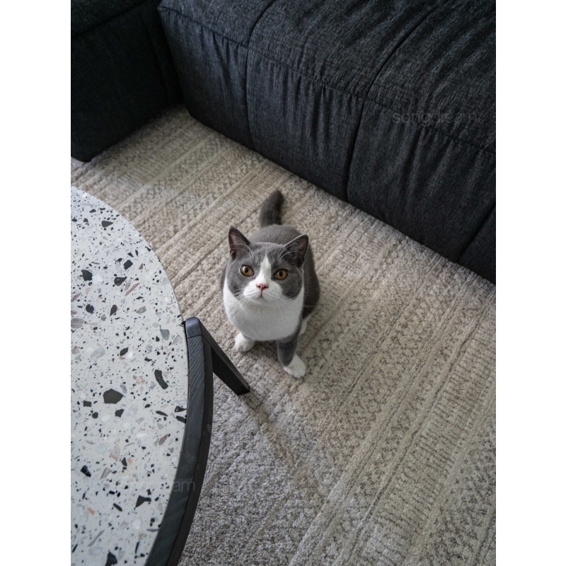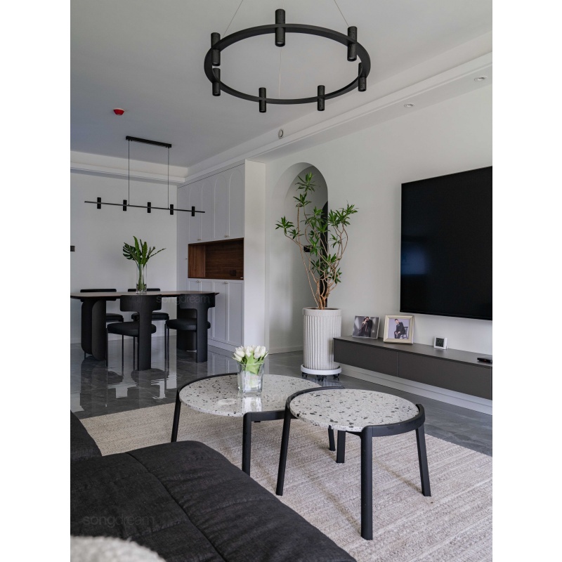 托盤茶幾簡(jiǎn)便輕盈,實(shí)木和水磨石的結(jié)合相映成趣
