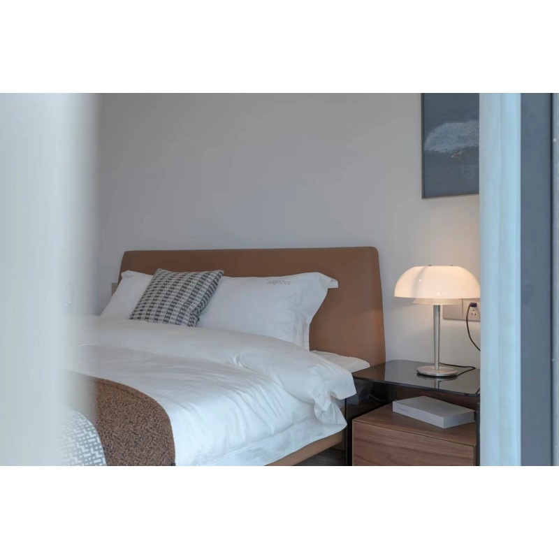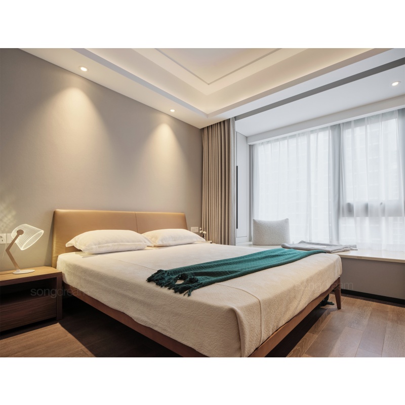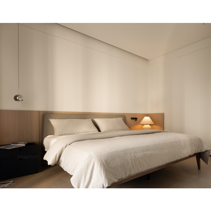 長輩房的不二之選,實(shí)木和真皮的結(jié)合,簡單大方,方便打理